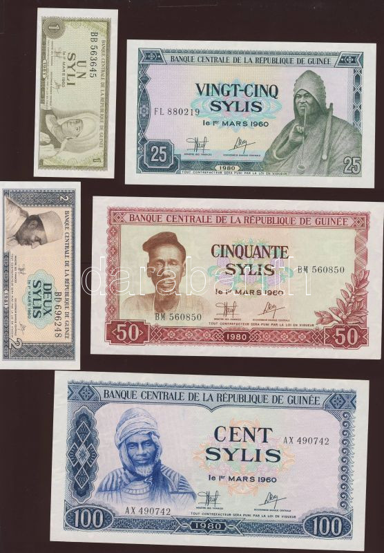 Guinea 1980-81. 1S, 2S, 5S, 10S, 25S, 50S, 100S, 500S teljes sor! T:I https://www.darabanth.com/hu/83-Gyorsarveres/83.0/Numizmatika/Kulfoldi-bankjegyek~5081/Guinea-1980-81-1S-2S-5S-10S-25S-50S-100S-500S-teljes-sor-TI~II174729
