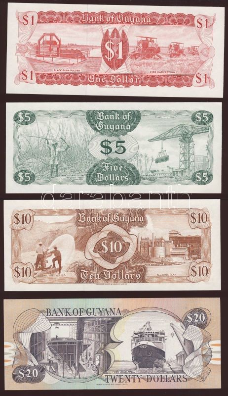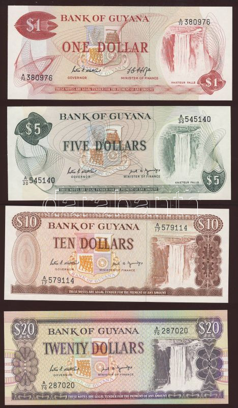 Leírás: Guyana 1966-92. 1$, 5$, 10$, 20$ teljes sor! T:I