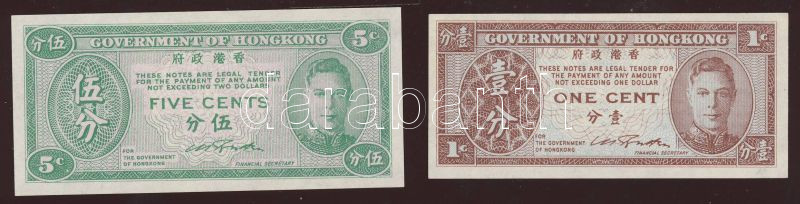 Hongkong 1945. 1c, 5c T:I https://www.darabanth.com/hu/83-Gyorsarveres/83.0/Numizmatika/Kulfoldi-bankjegyek~5081/Hongkong-1945-1c-5c-TI~II174846