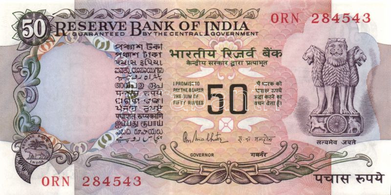 India 1978. 50R Sign.85 T:I https://www.darabanth.com/hu/83-Gyorsarveres/83.0/Numizmatika/Kulfoldi-bankjegyek~5081/India-1978-50R-Sign85-TI~II174884