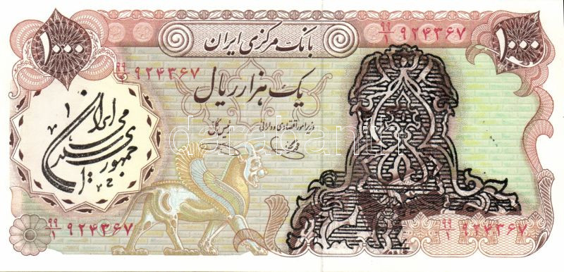 Irán/Iszlám Köztársaság 1978-79. III.kiadás 1000R T:I https://www.darabanth.com/hu/83-Gyorsarveres/83.0/Numizmatika/Kulfoldi-bankjegyek~5081/IranIszlam-Koztarsasag-1978-79-IIIkiadas-1000R-TI~II176246