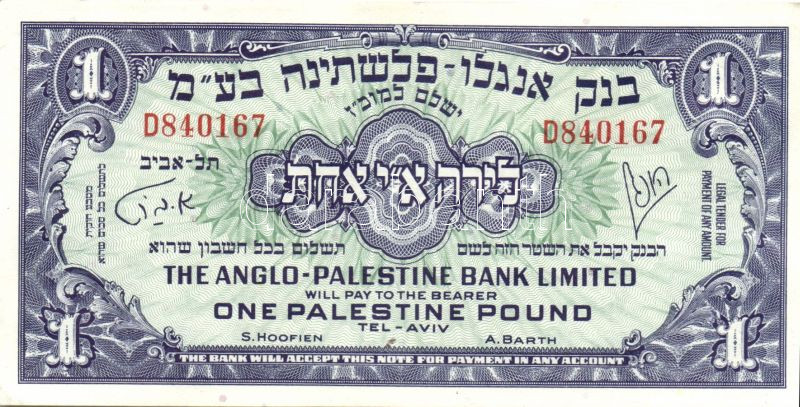 Izrael 1948-51. 1Ł T:II+ Csak egyszer hajtva, törve nem! https://www.darabanth.com/hu/83-Gyorsarveres/83.0/Numizmatika/Kulfoldi-bankjegyek~5081/Izrael-1948-51-1C581-TIIplus-Csak-egyszer-hajtva-torve-nem~II174501