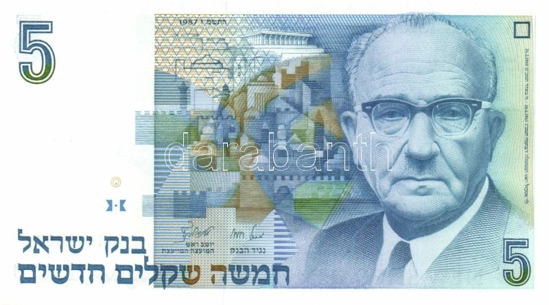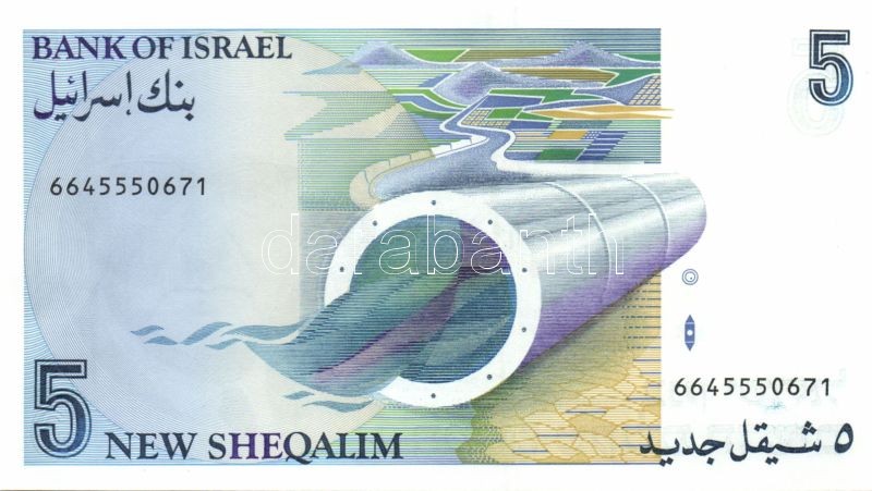 Izrael 1985-86. 1Sh, 5Sh T:I https://www.darabanth.com/hu/83-Gyorsarveres/83.0/Numizmatika/Kulfoldi-bankjegyek~5081/Izrael-1985-86-1Sh-5Sh-TI~II174768