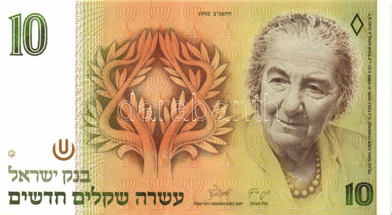 Izrael 1992. 10Sh Sign.8 T:I https://www.darabanth.com/hu/83-Gyorsarveres/83.0/Numizmatika/Kulfoldi-bankjegyek~5081/Izrael-1992-10Sh-Sign8-TI~II174770