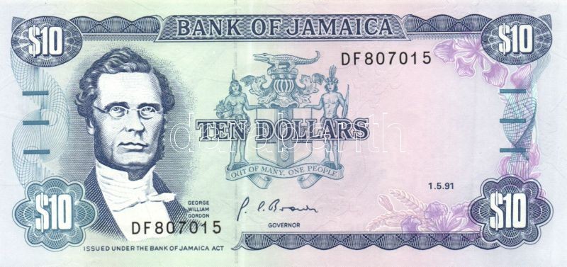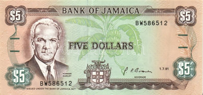 Jamaica 1991. 5$, 10$ T:I https://www.darabanth.com/hu/83-Gyorsarveres/83.0/Numizmatika/Kulfoldi-bankjegyek~5081/Jamaica-1991-5USD-10USD-TI~II174786