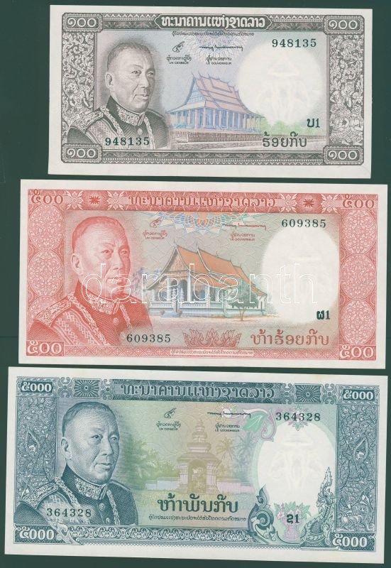 Leírás: Laosz 1974-75. 100K, 500K, 5000K T:I