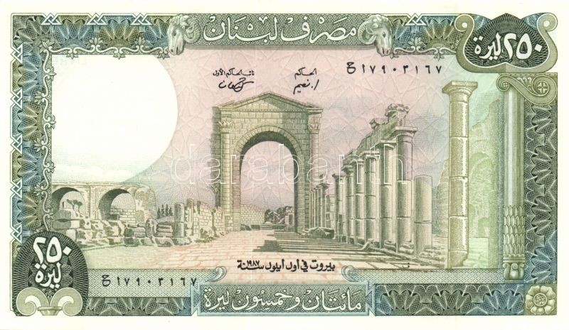 Libanon 1985-87. 50L, 250L T:I https://www.darabanth.com/hu/83-Gyorsarveres/83.0/Numizmatika/Kulfoldi-bankjegyek~5081/Libanon-1985-87-50L-250L-TI~II176997