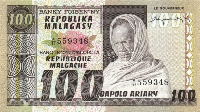 Madagaszkár 1974-75. 100Fr T:I https://www.darabanth.com/hu/83-Gyorsarveres/83.0/Numizmatika/Kulfoldi-bankjegyek~5081/Madagaszkar-1974-75-100Fr-TI~II177159