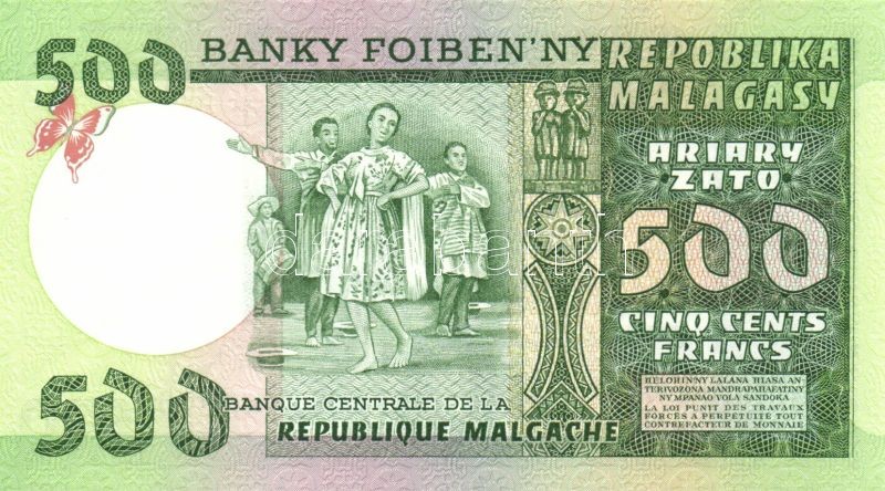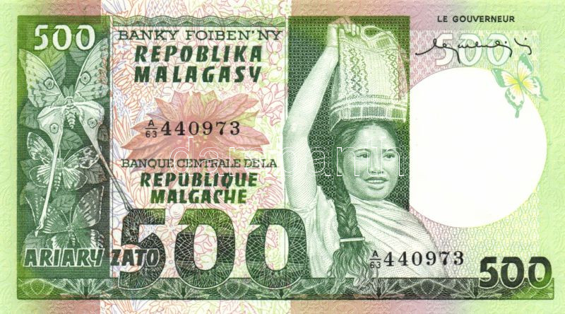 Madagaszkár 1974-75. 500Fr T:I https://www.darabanth.com/hu/83-Gyorsarveres/83.0/Numizmatika/Kulfoldi-bankjegyek~5081/Madagaszkar-1974-75-500Fr-TI~II177158