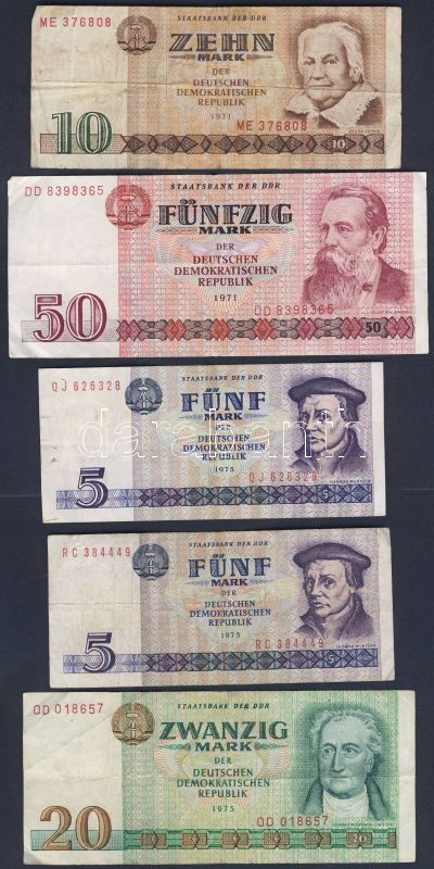 Leírás: NDK 1971. 10M, 50M + 1975. 5M (2x), 20M T:II,II/III
