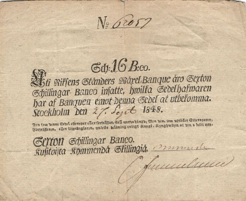 Svédország 1848. 16 Schillingar T:III R! https://www.darabanth.com/hu/83-Gyorsarveres/83.0/Numizmatika/Kulfoldi-bankjegyek~5081/Svedorszag-1848-16-Schillingar-TIII-R~II177061