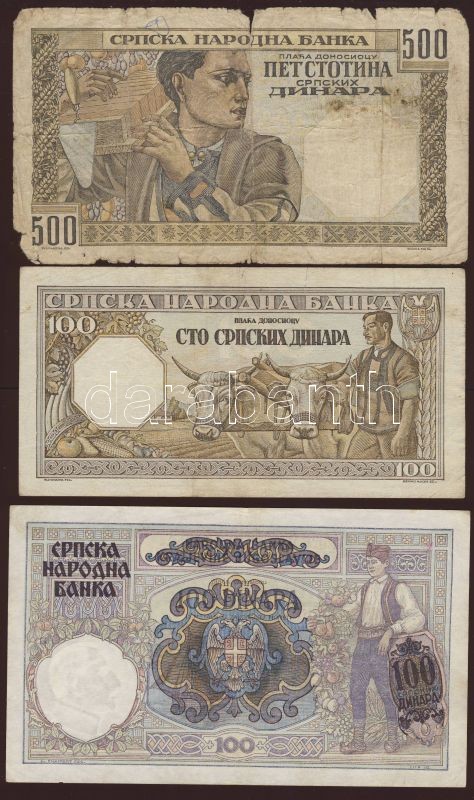 Leírás: Szerbia/német megszállás 1941. 100D, 500D T:II,IV + 1943. 100D T:II/III