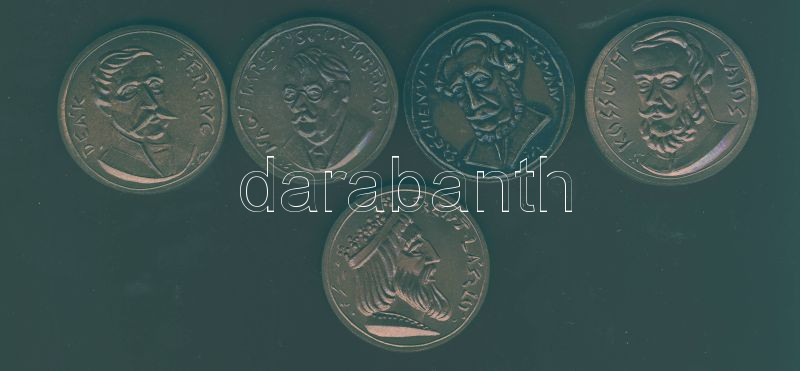 Leírás: Híres magyarok "Szt. László + Széchenyi István + Kossuth Lajos + Deák Ferenc + Nagy Imre" 5 klf Br érem azonos sorozatból T:1