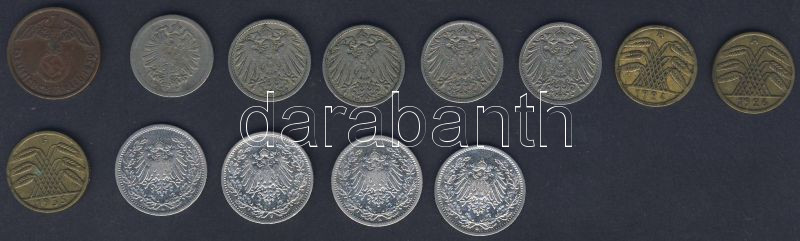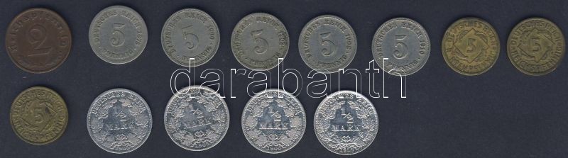Leírás: Német Birodalom 1875-1939. 2Pf (1x), 5Pf (8x) 2klf, 1/2M Ag (4x) T:2,3