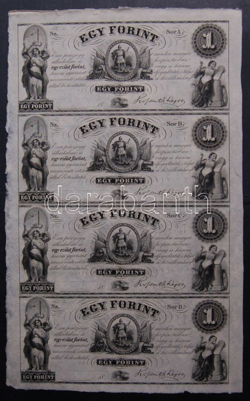 18.. Emigrációs "Kossuth bankók" 1Ft A,B,C,D összefüggő 4-es ívben T:I https://www.darabanth.com/hu/83-Gyorsarveres/83.0/Numizmatika/Osztrakmagyar-magyar-es-magyar-vonatkozasu-bankjegyek~5080/18-Emigracios-Kossuth-bankok-1Ft-A-B-C-D-osszefuggo-4-es-ivben-TI~II166121