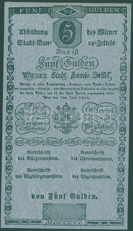 1806. Wiener Stadt Banco Zettel 5G Formulare T:I https://www.darabanth.com/hu/83-Gyorsarveres/83.0/Numizmatika/Osztrakmagyar-magyar-es-magyar-vonatkozasu-bankjegyek~5080/1806-Wiener-Stadt-Banco-Zettel-5G-Formulare-TI~II176956
