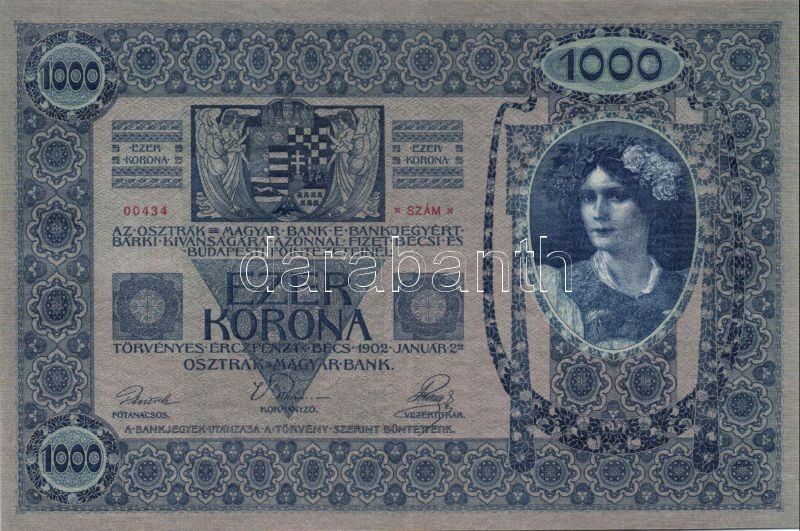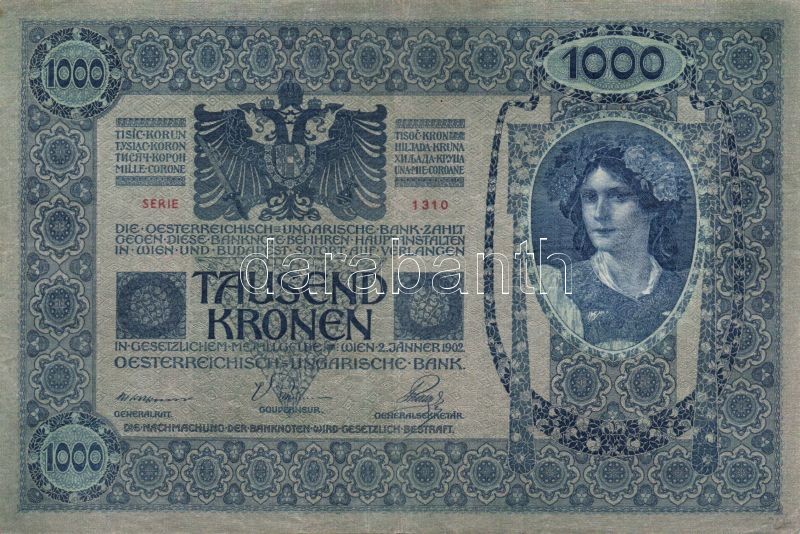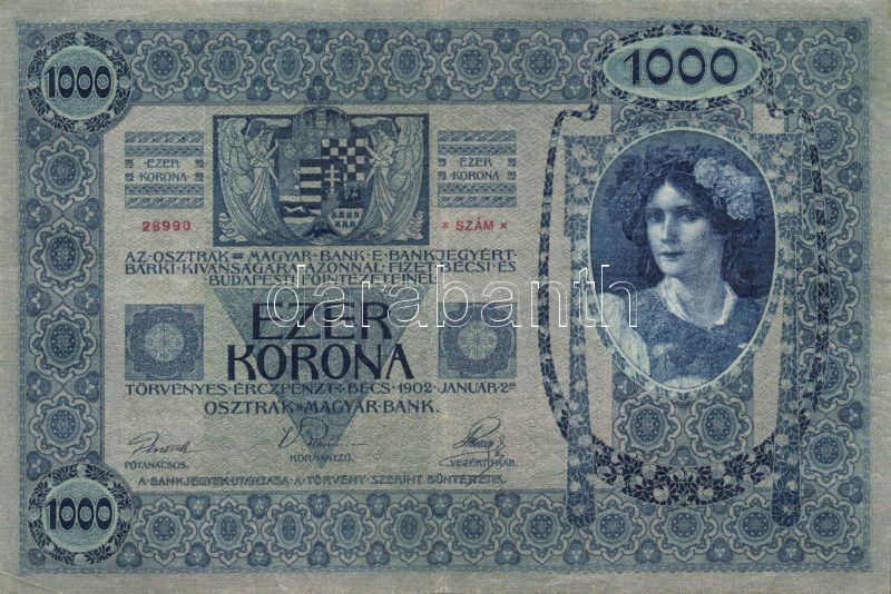 1902. 1000K 2klf (normál rózsaszínű) papíron T:II https://www.darabanth.com/hu/83-Gyorsarveres/83.0/Numizmatika/Osztrakmagyar-magyar-es-magyar-vonatkozasu-bankjegyek~5080/1902-1000K-2klf-normal-rozsaszinu-papiron-TII~II176972