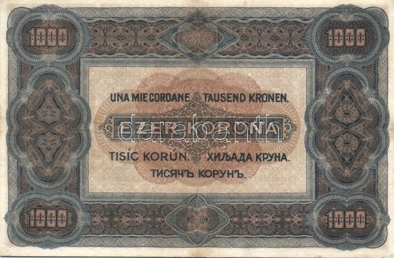 Leírás: 1920. 1000P barna sorozat és sorszámozással T:restaurált