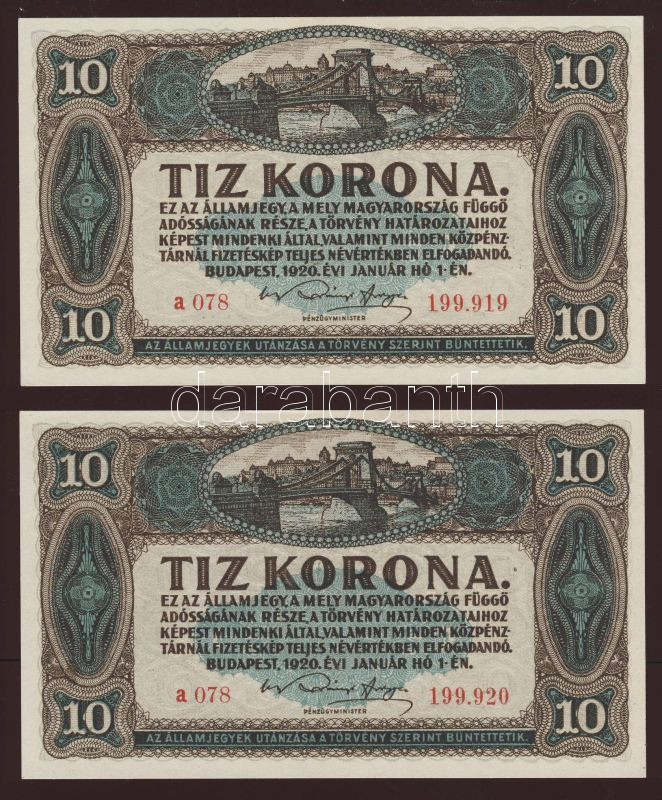 Leírás: 1920. 10K (2x) egymásutáni sorszámokkal T:I