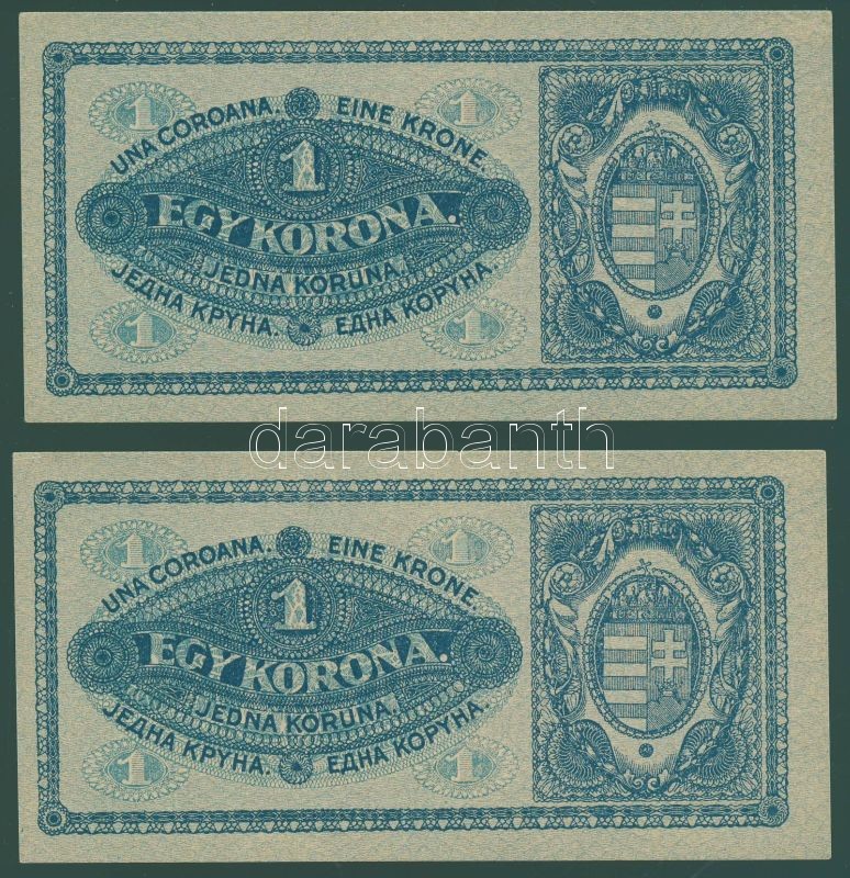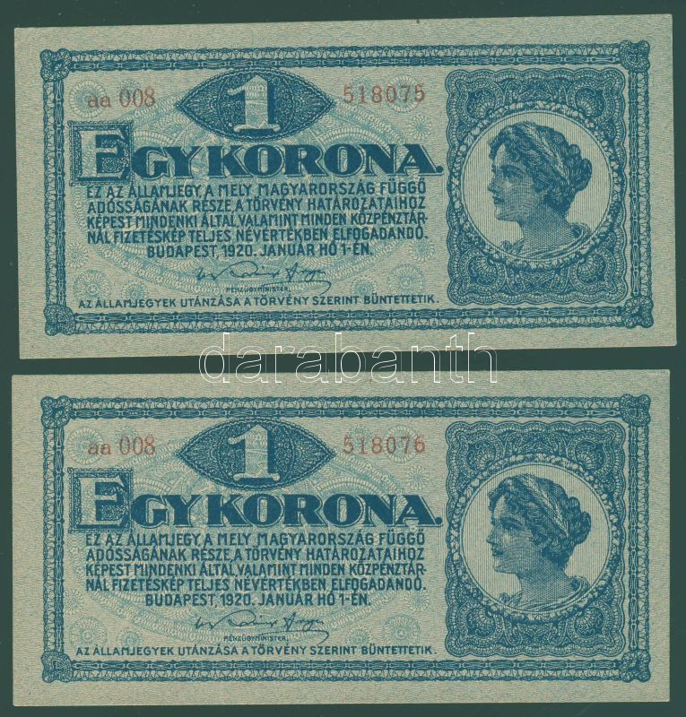 Leírás: 1920. 1K(2x) egymásutáni sorszámokkal T:I