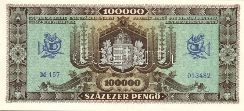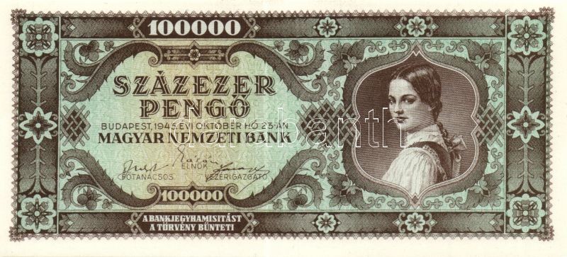 Leírás: 1945. 100000P (2x) egymásutáni sorszámokkal T:I
