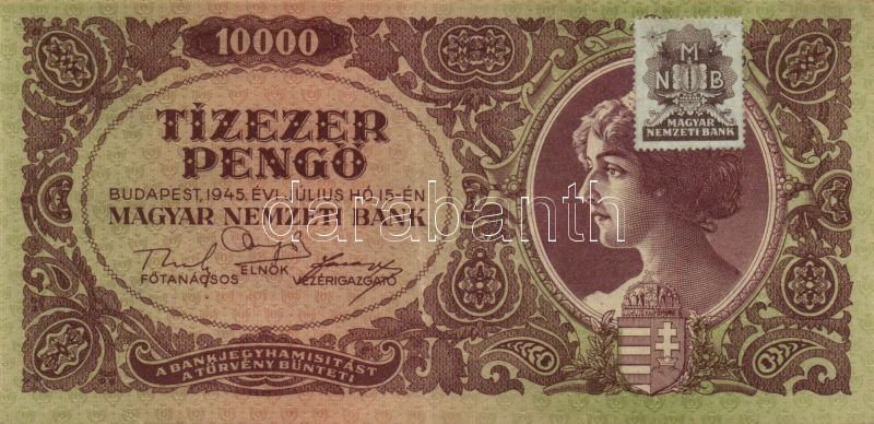 1945. 10000P normál bélyeggel erősen felfelé csúszott nyomat + 10000P ... https://www.darabanth.com/hu/83-Gyorsarveres/83.0/Numizmatika/Osztrakmagyar-magyar-es-magyar-vonatkozasu-bankjegyek~5080/1945-10000P-normal-belyeggel-erosen-felfele-csuszott-nyomat-plus-10000P-B-lemezhibas-belyegge~II175497