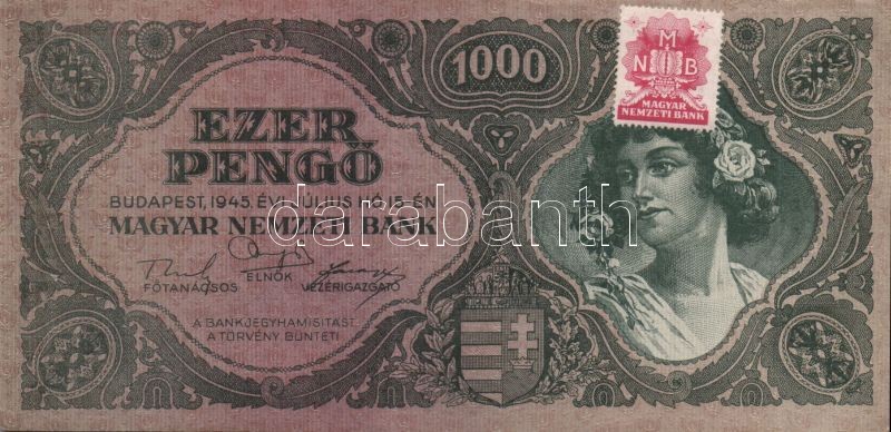 1945. 500P, 1000P bélyeggel T:II+ Csak egyszer hajtva, törve nem! https://www.darabanth.com/hu/83-Gyorsarveres/83.0/Numizmatika/Osztrakmagyar-magyar-es-magyar-vonatkozasu-bankjegyek~5080/1945-500P-1000P-belyeggel-TIIplus-Csak-egyszer-hajtva-torve-nem~II174671