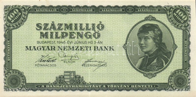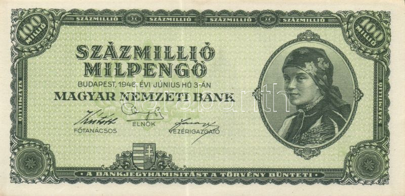 1946. 100000000P Milpengő(2x) T:I https://www.darabanth.com/hu/83-Gyorsarveres/83.0/Numizmatika/Osztrakmagyar-magyar-es-magyar-vonatkozasu-bankjegyek~5080/1946-100000000P-Milpengo2x-TI~II175493