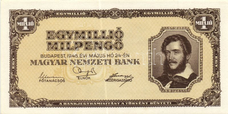 1946. 1000000P Milpengő(2x) T:I https://www.darabanth.com/hu/83-Gyorsarveres/83.0/Numizmatika/Osztrakmagyar-magyar-es-magyar-vonatkozasu-bankjegyek~5080/1946-1000000P-Milpengo2x-TI~II175495