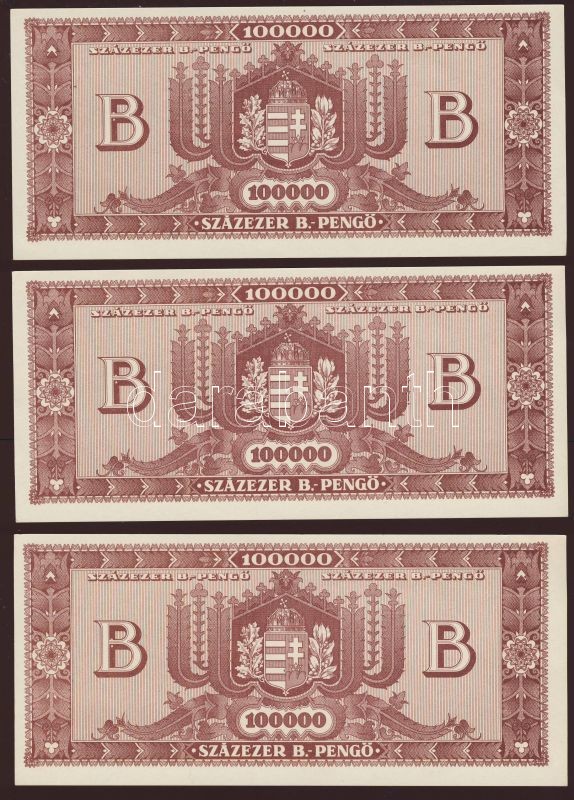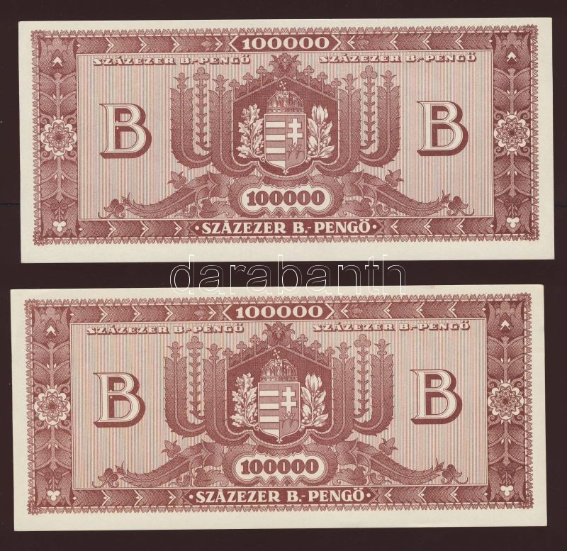 1946. 100000B.-pengő(5x)T:I https://www.darabanth.com/hu/83-Gyorsarveres/83.0/Numizmatika/Osztrakmagyar-magyar-es-magyar-vonatkozasu-bankjegyek~5080/1946-100000B-pengo5xTI~II175461