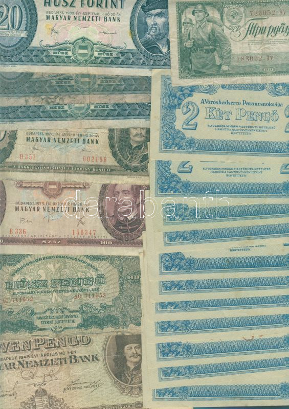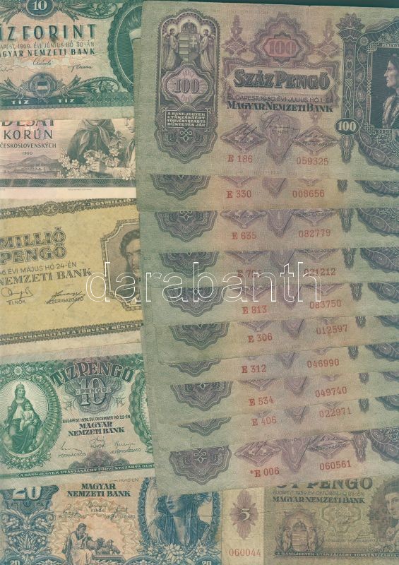 Leírás: Pengő-forint tétel 48db +2.klf, külföldi bankjegy 48db T:II,III,IV(kevés)