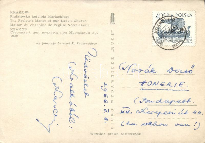 Leírás: 1966 Lakat Károly labdarúgó edző által írt képeslap