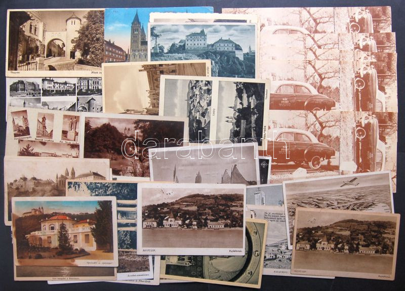 Leírás: 44db vegyes magyar háború előtti képeslap + 6db egyforma menetjegy-képeslap az Alsóőrs-Balatonalmádi sinautóbuszra a 80-as évekből