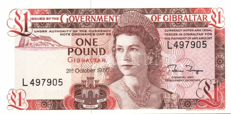 Gibraltár 1986.10.21. 1Ł T:I https://www.darabanth.com/hu/84-Gyorsarveres/84.0/Numizmatika/Kulfoldi-bankjegyek~327/Gibraltar-19861021-1C581-TI~II174711