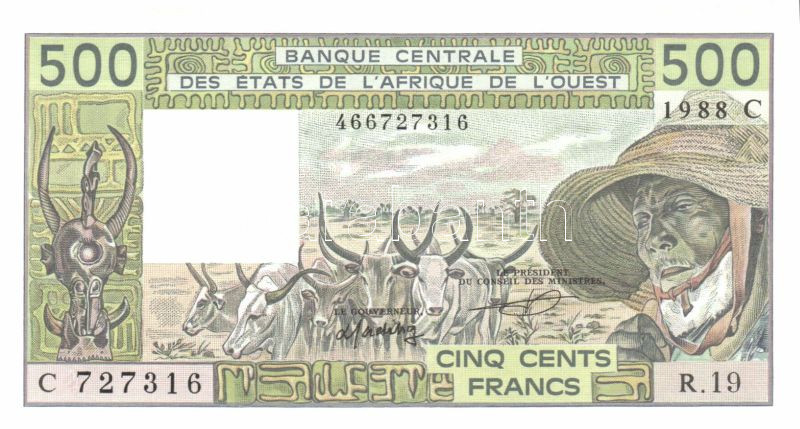 Nyugat-Afrikai Államok/Burkina Faso 1988. 500Fr Sign.14 T:I https://www.darabanth.com/hu/84-Gyorsarveres/84.0/Numizmatika/Kulfoldi-bankjegyek~327/Nyugat-Afrikai-AllamokBurkina-Faso-1988-500Fr-Sign14-TI~II179344