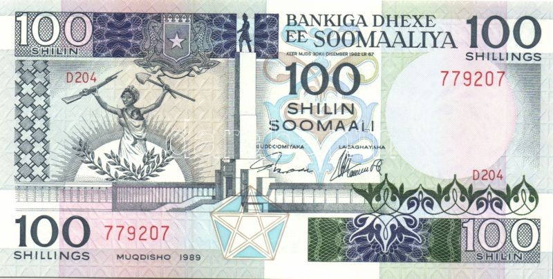 Szomália 1988+1989. 100Sh (2x) klf évszámmal T:I https://www.darabanth.com/hu/84-Gyorsarveres/84.0/Numizmatika/Kulfoldi-bankjegyek~327/Szomalia-1988plus1989-100Sh-2x-klf-evszammal-TI~II178929