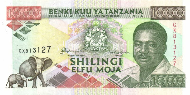 Tanzánia 1993. 1000Sh Sign.10 T:I https://www.darabanth.com/hu/84-Gyorsarveres/84.0/Numizmatika/Kulfoldi-bankjegyek~327/Tanzania-1993-1000Sh-Sign10-TI~II179138