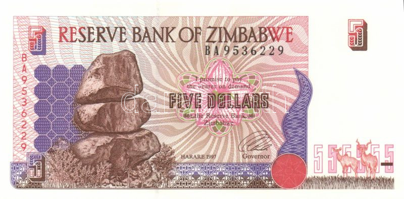 Zimbabwe 1994-97. 5$, 10$, 20$, 50$, 100$ T:I https://www.darabanth.com/hu/84-Gyorsarveres/84.0/Numizmatika/Kulfoldi-bankjegyek~327/Zimbabwe-1994-97-5USD-10USD-20USD-50USD-100USD-TI~II179458