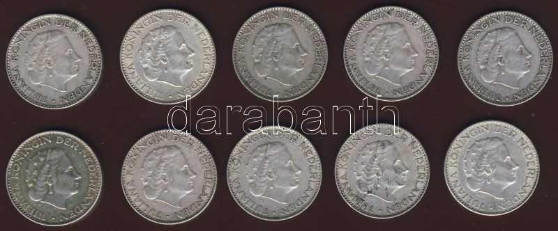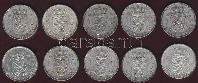 Leírás: Hollandia 1954-1965. 1G Ag (10x) vegyes évszámokkal T:2,2/3