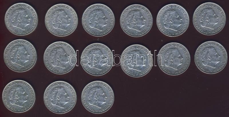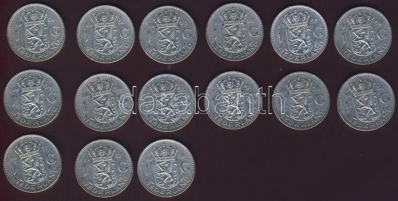 Leírás: Hollandia 1954-58. 1G Ag (15x) 5klf évszámmal T:2