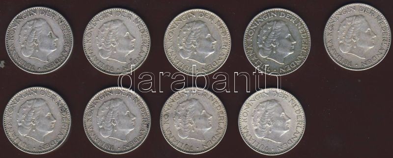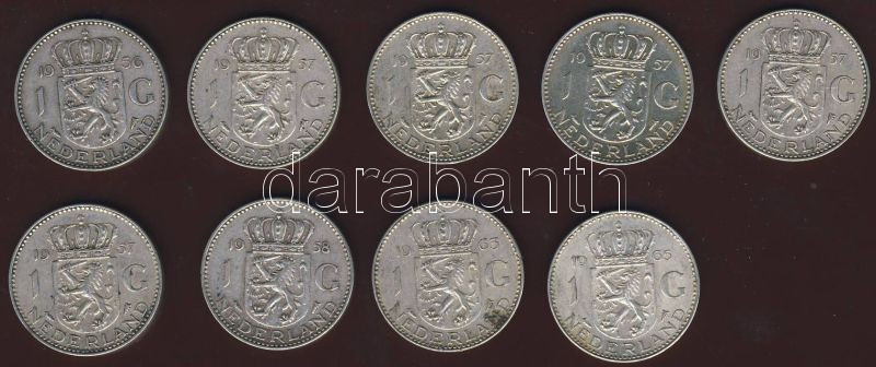 Leírás: Hollandia 1956-1965. 1G Ag (9x) vegyes évszámokkal T:2,2/3