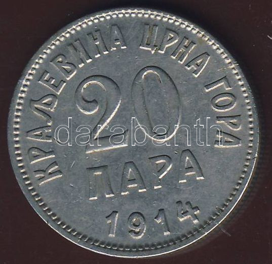 Montenegro 1914. 20P T:3+ https://www.darabanth.com/hu/84-Gyorsarveres/84.0/Numizmatika/Kulfoldi-fem-es-ezustpenzek~332/Montenegro-1914-20P-T3plus~II179579