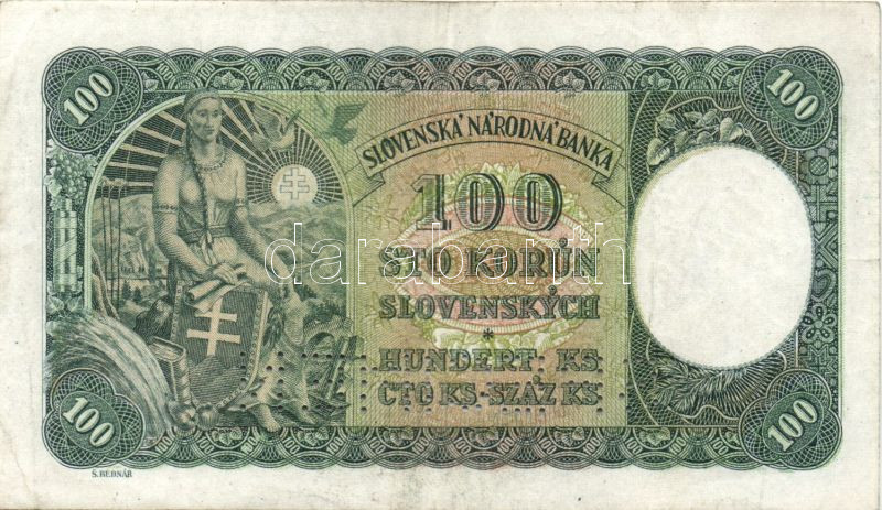 Szlovákia 1940. 100K "Minta" lyukasztással T:II- https://www.darabanth.com/hu/85-Gyorsarveres/85.0/Numizmatika/Kulfoldi-bankjegyek-Foreign-banknotes~530/Szlovakia-1940-100K-Minta-lyukasztassal-TII-~II184155