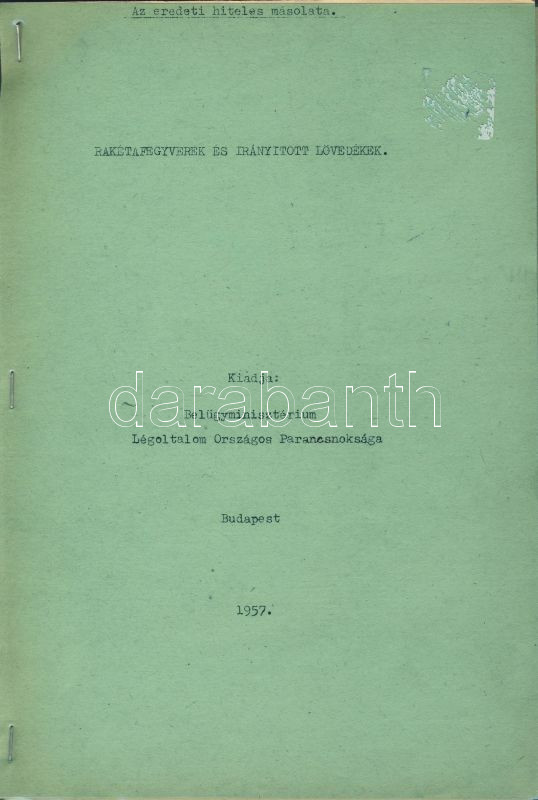 1957 Rakétafegyverek és irányított lövedékek A BM kiadványa https://www.darabanth.com/hu/87-Gyorsarveres/87.0/Festmeny-mutargy-papirregiseg-egyeb/Nyomtatvanyok-Printed-materials~316/1957-Raketafegyverek-es-iranyitott-lovedekek-A-BM-kiadvanya~II189901
