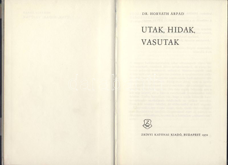 1970 Dr. Horváth Árpád: Utak, hidak, vasutak https://www.darabanth.com/hu/87-Gyorsarveres/87.0/Festmeny-mutargy-papirregiseg-egyeb/Nyomtatvanyok-Printed-materials~316/1970-Dr-Horvath-Arpad-Utak-hidak-vasutak~II189900
