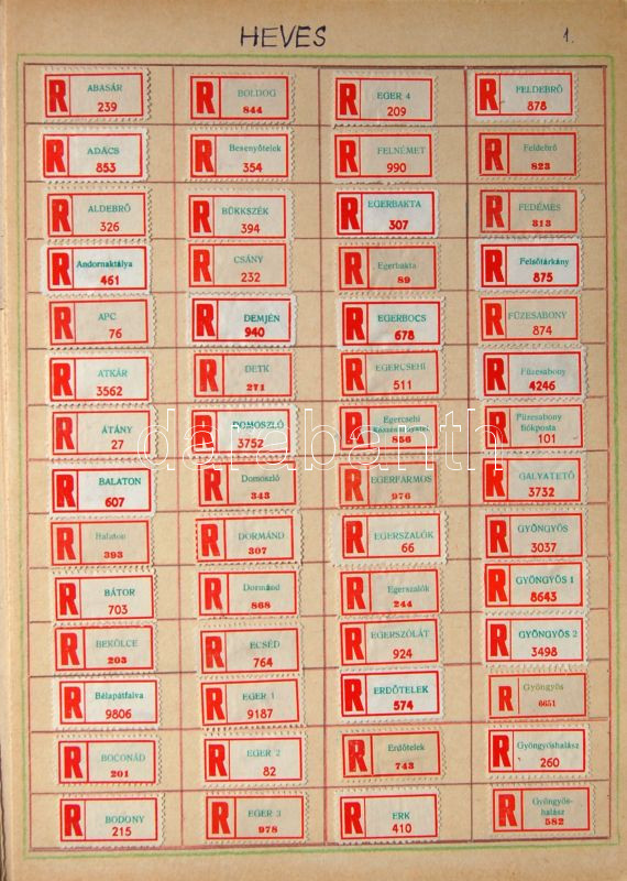Leírás: Ragjegygyűjtemény: néhány ezer darab nagyrészt különféle magyar ajánlási ragjegy házi készítésű lapokra megyénként feldolgozva