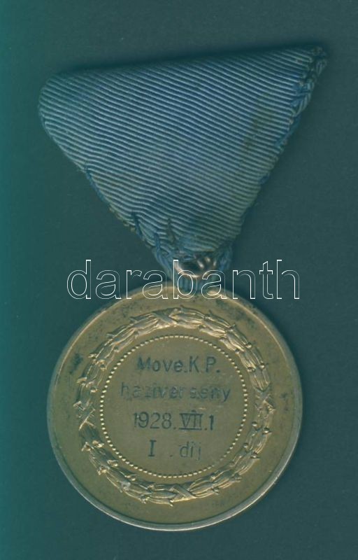 1928. "Move.K.P. háziverseny" díjérme szalaggal T:2 https://www.darabanth.com/hu/89-Gyorsarveres/89.0/Numizmatika/Kulfoldi-es-magyar-emlekveretek-plakettek-zsetonok-kituntetesek-jelvenyek~1395/1928-MoveKP-haziverseny-dijerme-szalaggal-T2~II190983