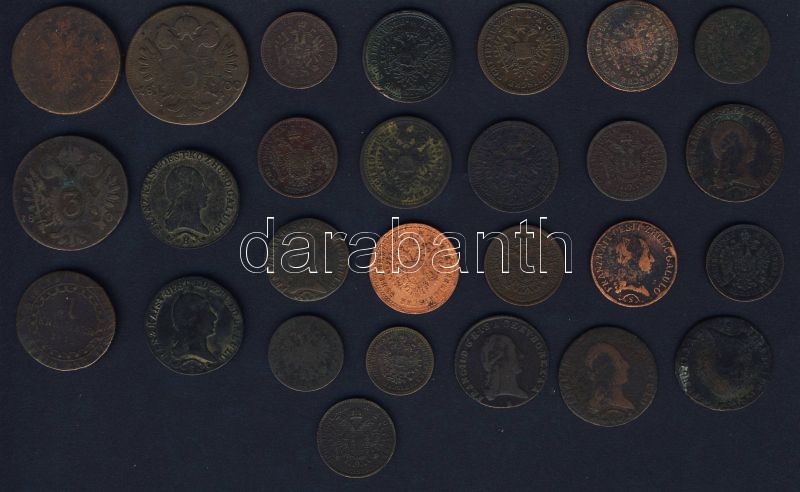 Leírás: Ausztria/magyar verdejel kis tétel 1800-1860. 5/10Kr (1x) + 1/2Kr (6x) 2klf típusban + 1Kr (17x) 4klf típusban + 3Kr (2x) + 4Kr (1x) összesen 27db T:3,4