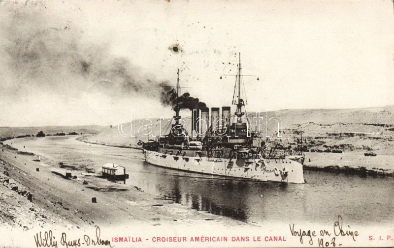 Ismalia US cruiser on the canal https://www.darabanth.com/hu/9-Nagyaukcio/9.1/Kulfoldi-kepeslapok/Egyiptom-Egypt~2293/Ismalia-US-cruiser-on-the-canal~II244964