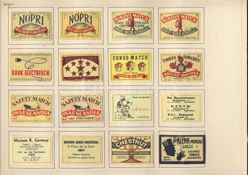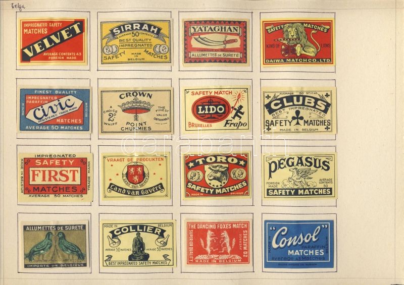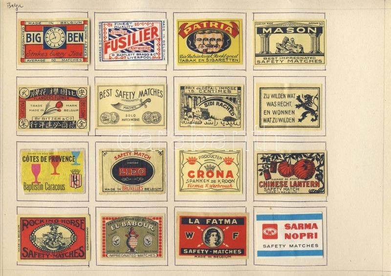 Leírás: 751 darabos szépen rendszerezett belga gyufacímke-gyűjtemény albumlapokon